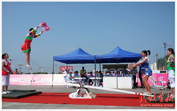 跳板是吉林省延吉市朝陽(yáng)川鎮(zhèn)朝陽(yáng)川小學(xué)的特色體育項(xiàng)目(民族畫報(bào)實(shí)習(xí)記者 董梅 攝影)
