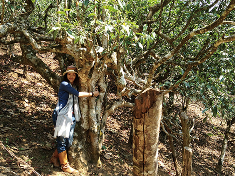 又走了一段,老茶樹開始出現(xiàn)在路邊。老茶樹主干與人的大腿等粗,萍芳家70年茶園茶樹主干也就手臂粗,長成大腿粗恐怕要好幾百年吧?茶樹上還另架著一根木頭以供上樹,我與唐郎興奮地爬上去假裝采茶,環(huán)顧四周滿滿的枝葉,原來站在古茶樹上這么威風(fēng)?。?/p>