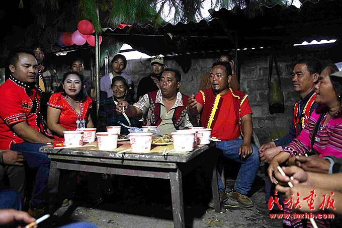 沿著曲折的山路開車一個(gè)多小時(shí),記者來到西盟縣秧洛村一組,恰巧碰到了一對(duì)新人喜結(jié)良緣。清脆的木鼓聲在大山里回蕩,秧洛村的村民喝喜酒、跳木鼓舞。
