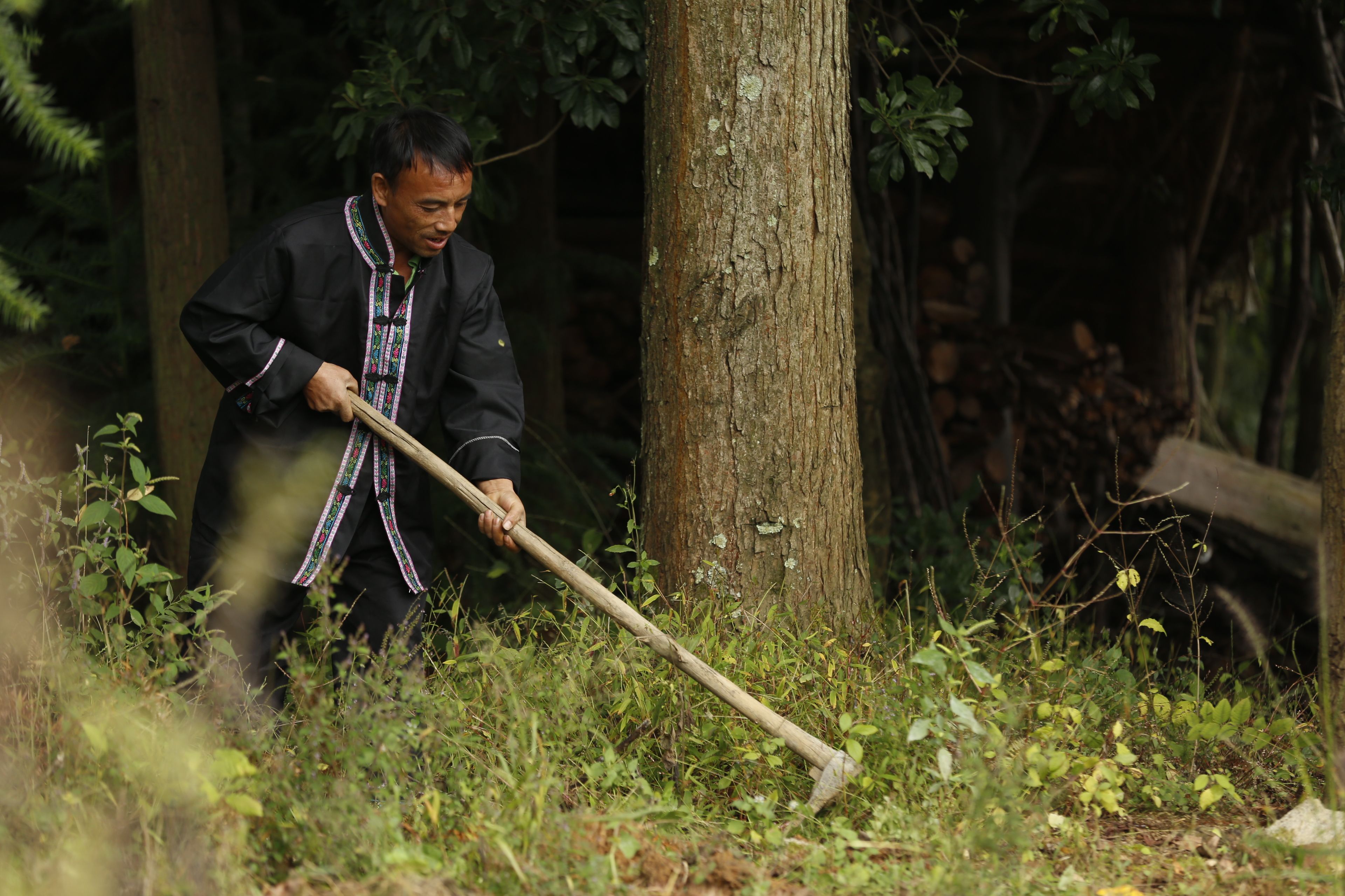 圖片說明:貴州貴陽苗族農作物種植-田里鋤地