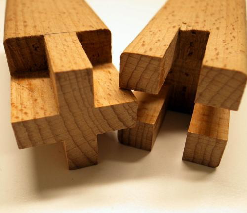 另一類是作為“點(diǎn)”的結(jié)構(gòu)方法。主要用于作橫豎材丁字結(jié)合,成角結(jié)合,交叉結(jié)合,以及直材和弧形材的伸延接合。如“格肩榫”、“雙榫”、“雙夾榫”、“勾掛榫”、“鍥釘榫”、“半榫”、“通榫”等等。