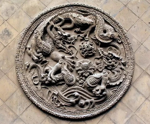 中國磚雕是由東周瓦當(dāng)、空心磚和漢代畫像磚發(fā)展而來的。漢代畫像磚是墓室預(yù)制構(gòu)件的大型空心磚,它是在濕的泥坯上用印模捺印各種圖像。北宋時形成磚雕,成為墓室壁面的裝飾品。在河南、山西、甘肅等地發(fā)掘的北宋墓室,三面墻壁均以磚雕貼砌而成。墓室內(nèi)的磚雕數(shù)量、質(zhì)量以及所選用的題材,都取決于墓室主人的社會地位。常見的題材有墓室主人夫婦對坐、男仆托盤、侍女執(zhí)壺等,再現(xiàn)了墓室主人生前的生活情景。金代,墓室磚雕的內(nèi)容更加豐富,技藝也有所提高。