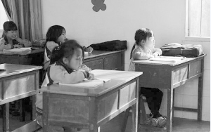 7歲的李曉彤(右)在華山小學(xué)教室晨讀。