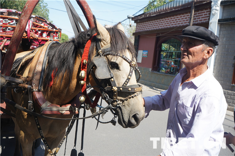 走在古巷中,你會聽到駕駛“哈迪克”(馬車)的維吾爾族老人的吆喝聲。招招手打個“馬的”,在嗒嗒的馬蹄聲和叮咚悅耳的馬鈴聲中,穿梭在一條條曲徑通幽的小路間,一路前往獨具特色的庭院和百年民居。每一條街道風(fēng)情各異,每一條小巷曲折有致,仿佛走進了一座建筑博物館。圖為駕駛“哈迪克”的老人。
