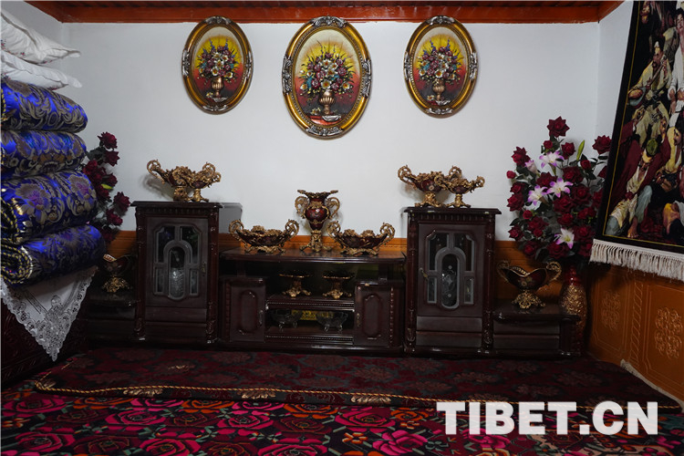 圖為吐達洪巴依大院房間內(nèi)的擺設(shè)。