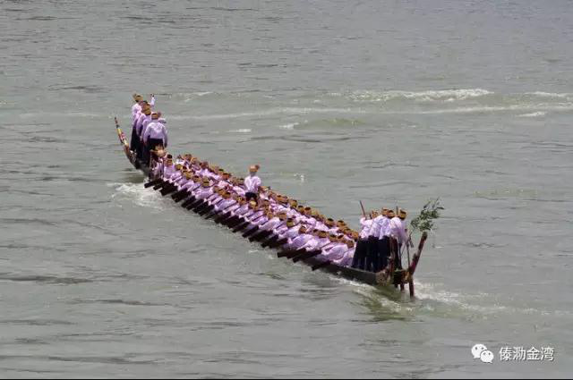 每年的潑水節(jié),西雙版納傣族都要舉行橫渡瀾滄江的賽龍舟活動。一般在潑水節(jié)的第一天舉行。比賽時,江上停泊著披綠掛彩的龍船,船上坐著數(shù)十名精壯的水手,船中間站立1人擊鑼指揮,號令一響,整裝待發(fā)的龍船像箭一般往前飛去,在規(guī)定的范圍內,哪一隊先到達目的地為勝。