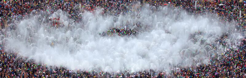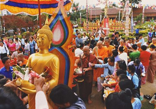 新年潑水是一種禮節(jié),既隆重又熱鬧。除夕那天,人們先到佛寺里,取來最干凈的清泉(江河)水,采來最香的鮮花,把花瓣撒在水中,每人取一瓢,用含著花香的清水給佛像沐?。ㄏ笳鹘o佛祖沐浴),祈求來年平安。儀式舉行完后,人們用樹枝和鮮花浸水相互淋灑,以示祝福,口中不斷地說著“薩瓦沙麗”(吉祥安康)“如利京宛”(幸福健康)。對(duì)長(zhǎng)者只能輕輕地淋灑在肩和背上,表示尊重。到佛寺外和街上,年輕人們就可以潑水狂歡,以示祝福和歡樂。