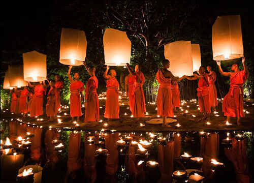 “奧瓦薩”時(shí)間在傣歷1 2月1 5日(陽(yáng)歷9月中旬)。這一天,表示從“關(guān)門節(jié)”以來的安居齋戒期已滿,男女老幼皆盛裝去佛寺里拜佛,以食物、鮮花、蠟條、錢幣獻(xiàn)佛,向佛祖懺悔,祈求佛祖賜福降平安,同時(shí)舉行盛大的娛樂集會(huì),“章哈”演唱,放高升、晚上放焰火、放孔明燈等,慶祝開門節(jié)。此時(shí),雨季已過,稻谷收割完畢,故也稱為慶祝豐收的節(jié)日。