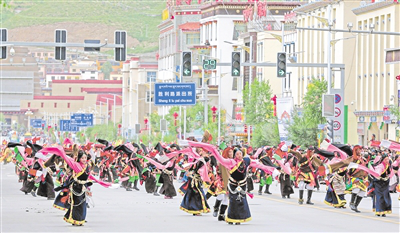 2017年7月24日下午,一場(chǎng)名為“瀟灑的康巴人”玉樹風(fēng)情巡游在玉樹藏族自治州州府玉樹市街頭上演。來自玉樹州一市五縣的康巴藏族兒女或馭駿馬、或盛裝、或歌舞,以行走巡游的方式展示當(dāng)?shù)鬲?dú)具特色的民族民俗文化。各縣巡游隊(duì)伍從感恩廣場(chǎng)出發(fā),途徑結(jié)古大道、民主路,最終到達(dá)玉樹軍分區(qū),沿途圍滿了觀看的群眾和游客,據(jù)悉,此次巡演在玉樹州尚屬首次。