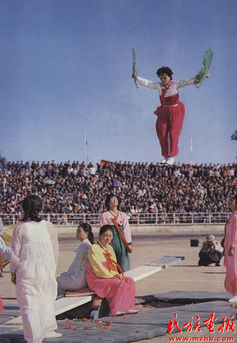 1982年9月2日至8日,第二屆全國(guó)少數(shù)民族傳統(tǒng)體育運(yùn)動(dòng)會(huì)在內(nèi)蒙古呼和浩特舉行,圖為朝鮮族婦女展示傳統(tǒng)游戲項(xiàng)目——跳板。全國(guó)少數(shù)民族傳統(tǒng)體育運(yùn)動(dòng)會(huì)發(fā)掘了一大批新項(xiàng)目,并在探索普及與提高結(jié)合、群眾性與專(zhuān)業(yè)化結(jié)合、傳統(tǒng)體育與現(xiàn)代體育結(jié)合、民族性與世界性結(jié)合的道路上取得了可喜的進(jìn)步,使少數(shù)民族傳統(tǒng)體育走上了普及、提高、規(guī)范、科學(xué)的道路。目前全國(guó)少數(shù)民族傳統(tǒng)體育運(yùn)動(dòng)會(huì)已經(jīng)舉辦了十屆《民族畫(huà)報(bào)》1982年第12期