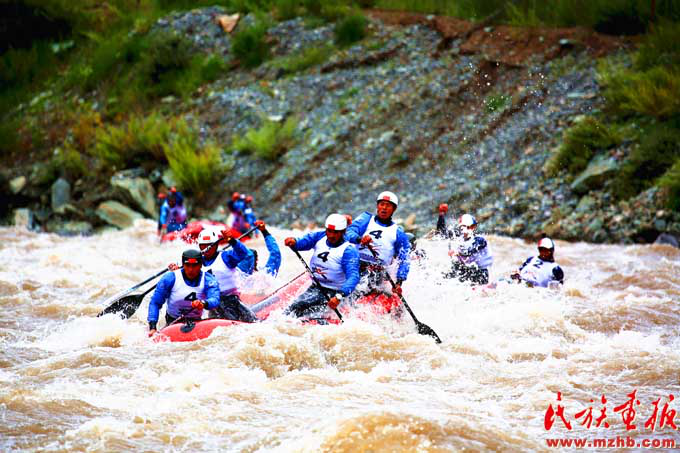 憑借地理和生態(tài)優(yōu)勢,玉樹成為國家高原漂流培訓(xùn)基地和世界上海拔最高的漂流勝地之一(滕俊 攝影)