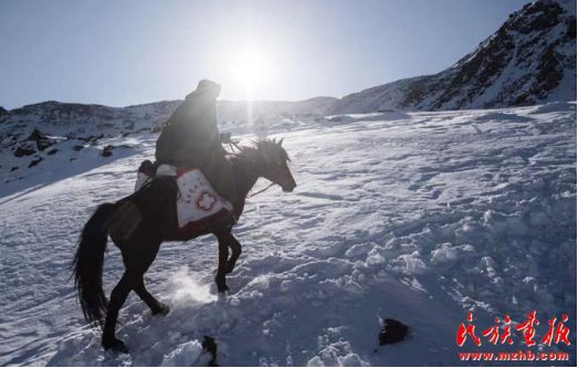 居馬泰·俄白克工作所在地包扎墩,是特克斯縣一片神奇的土地,哈薩克語(yǔ)的意思是“未開(kāi)發(fā)之地”,也是一個(gè)令牧民從心底里畏懼的地方。居馬泰·俄白克在師傅司馬胡勒的帶領(lǐng)下,一頭扎進(jìn)牧區(qū)。這里最高海拔超過(guò)4000米,許多地方路面只有七八十厘米寬,每年冬季牛羊轉(zhuǎn)場(chǎng),稍有不慎,人和馬就會(huì)墜下山崖。但就在這樣一個(gè)地方,每個(gè)病人的呼喚,居馬泰都立即前往;病人的每一次要求,居馬泰都絕不推辭。無(wú)論白天黑夜、刮風(fēng)下雨,居馬泰都毫不猶豫地備鞍,背上藥箱,揚(yáng)起馬鞭上路。很多牧民善意地開(kāi)玩笑說(shuō):“居馬泰是個(gè)會(huì)飛的醫(yī)生?!?/p>