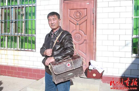 一只老式的皮藥箱、一匹馬、一個(gè)裝滿(mǎn)藥的馬褡子、一件綁在馬鞍后的皮大衣,見(jiàn)證了居馬泰·俄白克的牧區(qū)醫(yī)生生活,他那風(fēng)塵仆仆的身影在包扎墩牧區(qū)已經(jīng)成為牧民們眼中最美的身影。