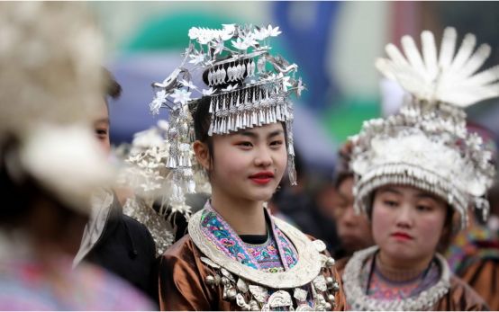 苗族頭飾主要是以銀飾為主。苗族女孩從學(xué)會(huì)走路開(kāi)始,父母就會(huì)給女兒制作一套苗族民族盛裝和頭飾,苗族女孩一般6歲左右就可以參加每年的民族盛會(huì),并且從小學(xué)習(xí)化妝技術(shù)。苗族的盛會(huì)主要集中在春節(jié)后,也叫坡會(huì),就是山坡上的聚會(huì),這一天苗族姑娘就會(huì)穿上珍藏已久的民族盛裝,戴上頭飾,把自己打扮的漂漂亮亮,參加蘆笙踩堂舞,展示自己的美麗一面。