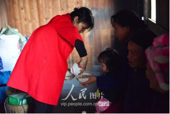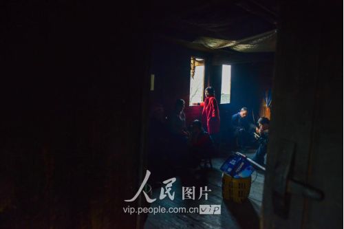 一般要到快過春節(jié)的時候,男方家才專門請人去接女方來洗糯米、打糍粑,新娘方能在夫家住上一夜;在來年農(nóng)忙時節(jié),又接女方來幫忙,夜里仍不能在男方家留宿,幫完忙當(dāng)晚即回去,只有待到女方有身孕后,新娘才到夫家長住。圖為11月16日夜,新娘潘芝銀家為準(zhǔn)備婚禮,燈火徹夜長明。