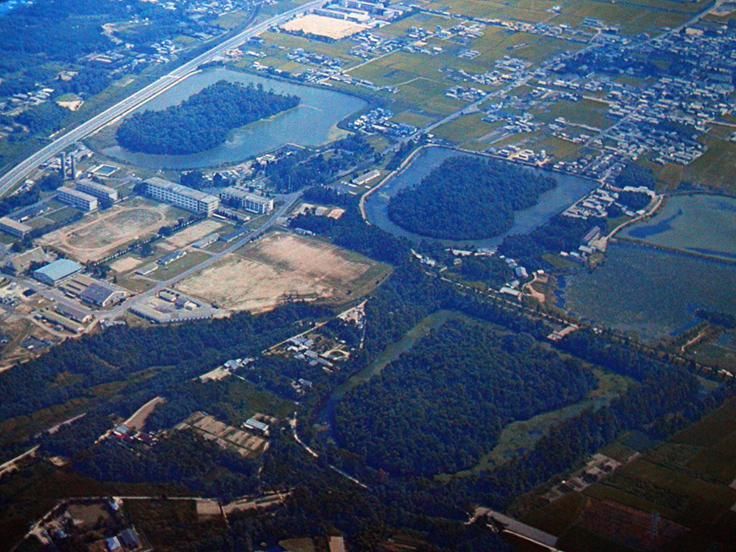 日本的古墳形制稱為前方后圓,圓的部分與中國墳丘一樣,是有封土的,前面方形部分為祭祀的地方,周圍有壕溝。因此日本古墳至今保存的比較好。