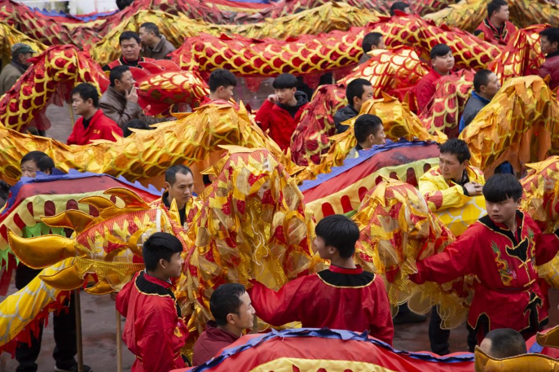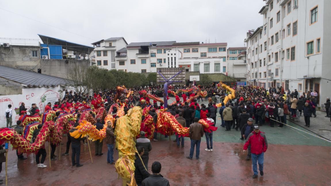出燈之前要擇吉,養(yǎng)龍司一般選擇在正月初八出燈,養(yǎng)龍司周邊村寨的龍燈都需要到鎮(zhèn)中心廣場來進(jìn)行集體亮相,所有龍燈排隊各自進(jìn)行精彩表演?!岸垞寣殹弊顬槲搜矍?。“二龍搶寶”,是前面一個圓形寶燈不斷前后左右滾動,兩條龍前翻后滾,或跳躍奪珠,場面極其熱鬧壯觀。另外還有“懶龍翻身”、“蛟龍出水”、“盤龍”等多種表演形式。在以前此環(huán)節(jié)都是參廟后晚上集體表演,現(xiàn)今政府考慮到安全因素,所有龍燈都提前在白天表演。