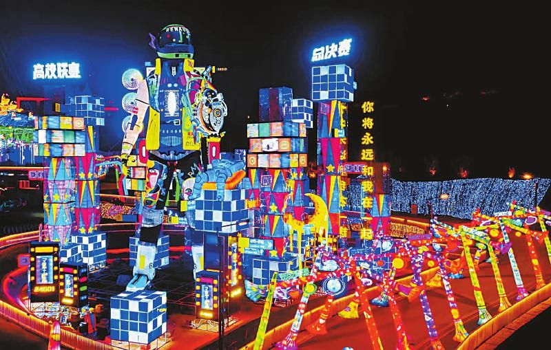 2月22日晚,第27屆自貢國(guó)際恐龍燈會(huì)從“云”上轉(zhuǎn)為線下,在中華彩燈大世界璀璨綻放。