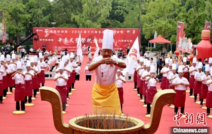 11日上午,2021第十八屆中國彭祖伏羊節(jié)在江蘇徐州彭祖園舉行開幕式,徐州當(dāng)?shù)卦俅纬尸F(xiàn)一年一度的“萬人空巷吃伏羊”民俗奇觀。作為中國彭祖伏羊節(jié)開幕式的重頭戲,來自全國各地數(shù)百名烹飪大師再次齊聚彭祖祠共同祭拜華夏烹飪鼻祖彭祖。烹飪大師們統(tǒng)一著裝,整齊列隊,行叩拜大禮,聲勢浩大,莊嚴肅穆,十分壯觀。