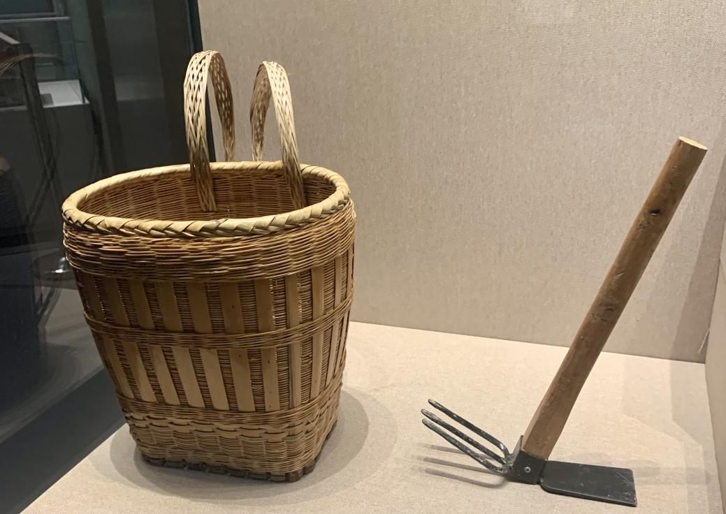 采藥小背簍和藥鋤(許覬佳攝于貴州省民族博物館)