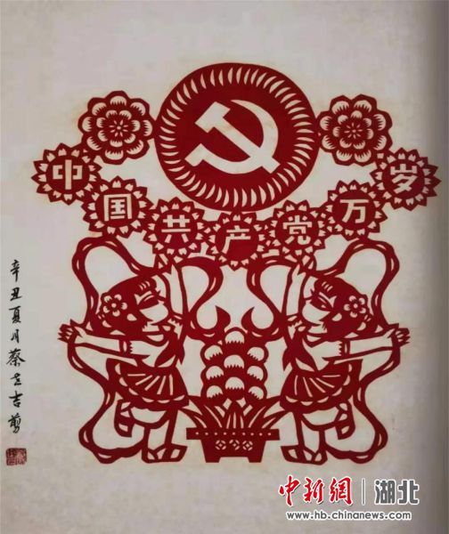 在中國共產(chǎn)黨成立100周年之際,棗陽市非物質(zhì)文化遺產(chǎn)傳承人蔡世吉,以紙、刀、剪等工具,創(chuàng)作出一幅幅精美絕倫的剪紙藝術(shù)作品,謳歌黨的豐功偉績(jī),表達(dá)對(duì)祖國繁榮富強(qiáng)的美好祝愿。