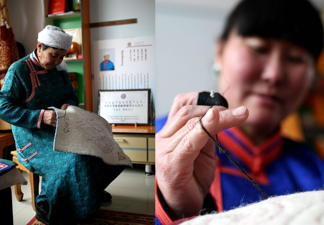 2014年,“氈繡技藝”成功入選了第四批國家級非物質(zhì)文化遺產(chǎn)代表性項目名錄,而如今,古老的蘇尼特氈繡技藝再一次開始風(fēng)靡一時,延伸到了抱枕、沙發(fā)墊、手機(jī)套、電腦電視機(jī)蓋布、包包、筆筒上等一系列現(xiàn)在產(chǎn)品上。