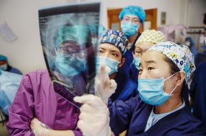 北京援藏醫(yī)生韓同英(右一)在北京市組團幫扶的拉薩市人民醫(yī)院對當(dāng)?shù)蒯t(yī)生進(jìn)行傳幫帶。