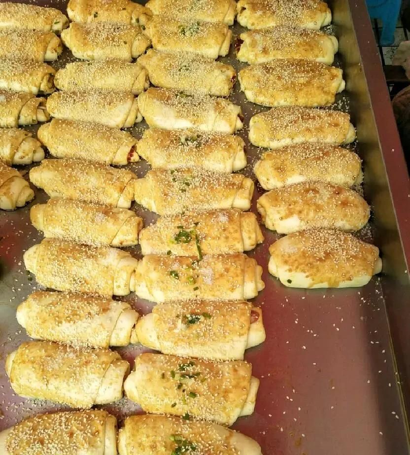 外表黃澄澄,撒著一層芝麻,一口咬開,里面的辣椒、香腸、肉末是否讓您食指大動(dòng)呢?