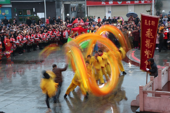 2019年2月16日農(nóng)歷正月十二是瓦寨鎮(zhèn)傳統(tǒng)大型集會活動日,舞龍為主要活動之一。午飯后,來自全縣各地的舞龍舞獅隊(duì)、花燈隊(duì)陸續(xù)到瓦寨政府廣場集結(jié),并在廣場右側(cè)有序排隊(duì)等待,各隊(duì)隊(duì)員精神抖擻、神采飛揚(yáng)、迫不及待。前來參觀元宵舞龍的群眾和游客也不斷涌向廣場,大街小巷行人猶如潮涌,吆喝聲、歡笑聲、鑼鼓聲連綿不斷……下午五時許,活動在瓦寨鎮(zhèn)政府廣場正式開始,先是由鎮(zhèn)領(lǐng)導(dǎo)對脫貧攻堅(jiān)各項(xiàng)惠民政策及5年來瓦寨取得的攻堅(jiān)戰(zhàn)績進(jìn)行宣講,宣講慳鏘有力、扣人心弦,特別是5年來瓦寨取得的攻堅(jiān)戰(zhàn)績,一致得到人民群眾好評和認(rèn)可。隨后,舞龍、舞獅、花燈表演紛紛上演,只見黃龍時而上下翻騰,時而昂首擺尾,雄獅時而就地打滾,時而賣萌撒嬌,樣子憨態(tài)可掬,花燈表演幽默滑稽,在前行中跑出各種套路,起伏波動、生動活潑,吸引了所有人的目光,贏得了陣陣喝彩……