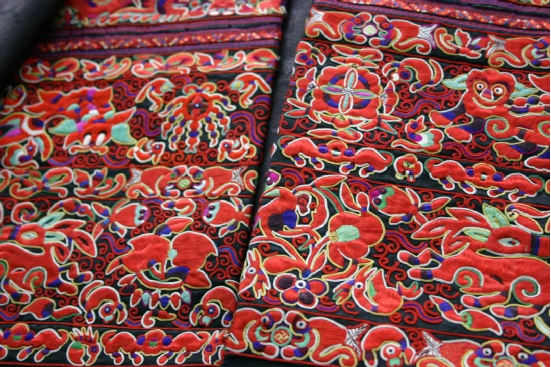 貴州臺江苗繡是苗族刺繡中最具典型意義的民間藝術(shù)品之一,一針一線,都是東方審美的極致體現(xiàn)。極為大膽的配色,夸張生動的圖案,對稱和諧的紋樣,成就了古樸精致又絢麗多彩的苗繡。每一個繡娘都有自己的見解,她們借物隨心,見山繡山,見水繡水,花樣百出,栩栩如生!