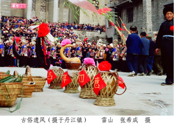 人們不難發(fā)現(xiàn),在鼓藏節(jié)中,有以原始宗教觀念為基礎(chǔ),祭祀列祖列宗——從蝴蝶媽媽、姜央(有的稱為伏羲)兄妹、蚩尤到各支系的祖先,并祈求他們護(hù)佑人畜興旺、安康長(zhǎng)壽的內(nèi)容,也有慶祝豐收、發(fā)展經(jīng)濟(jì)的愿望。既有禮樂(lè)教化、弘揚(yáng)先民功績(jī),激勵(lì)后人奮進(jìn)的民族精神,也有力主平等、崇尚武功的演示;既展示了苗族方方面面的獨(dú)特習(xí)俗,又展示了苗族的倫理道德、音樂(lè)舞蹈、銀飾服飾、民間體育以及戀愛(ài)自由與婚姻自主等的獨(dú)特文化。