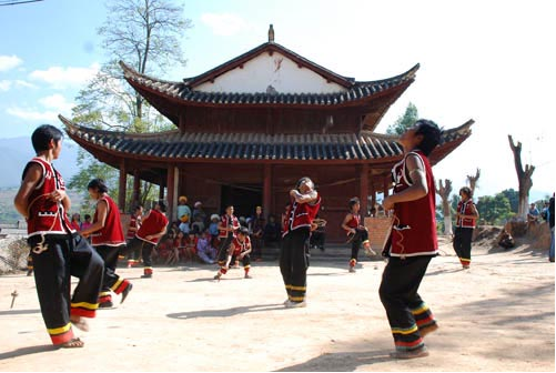 佤族同胞在雙江這片紅土地上長期繁衍生息,積淀了自己獨(dú)特的生活和文化習(xí)俗。其中最彰顯佤族驃勇個(gè)性的就是體育競技“雞棕陀螺”。雞棕陀螺迄今只為雙江佤族所獨(dú)有,在全國獨(dú)一無二。表演雞棕陀螺極富難度技巧。雞棕陀螺用質(zhì)地堅(jiān)硬的紫楊木制作,因其外觀像野生菌雞棕而得名。其表演要領(lǐng)是: