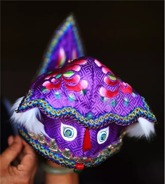 走進(jìn)楊文煥的工作室,猶如進(jìn)入一個明媚鮮艷的夢境。首先映入眼簾的,便是那一頂頂色彩鮮艷、繡工精致的童帽:造型大方、線條流暢的獅子帽;色彩明艷、虎虎生威的老虎帽;精巧別致、活潑可愛的翹尾帽;高雅富麗、古韻悠長的公子帽;別具一格、特色鮮明的牌坊帽。