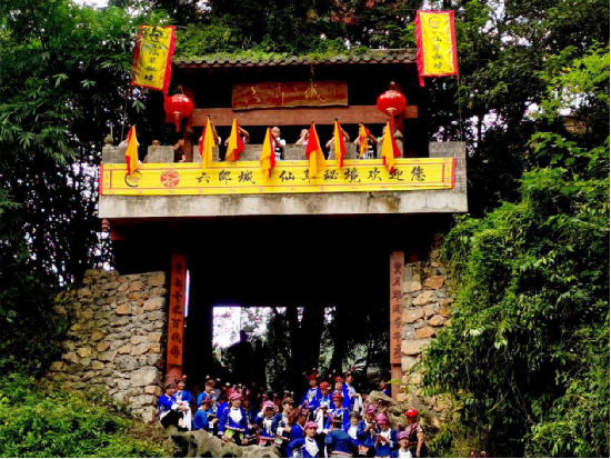 六郎城村屬于喀斯特地貌,四面環(huán)山,山上有整片古木參天的風(fēng)水樹林,山峰外側(cè)懸崖峭壁,山峰內(nèi)部平緩;左邊是陡壁,縱有萬千來犯之?dāng)骋部蓱{借地勢(shì)險(xiǎn)要守住,右邊是六郎城,只要在烽火臺(tái)上點(diǎn)燃狼煙,三五分鐘即可就位嚴(yán)陣以待?,F(xiàn)殘存有青石壘砌石墻、戰(zhàn)壕、瞭望臺(tái)、石碉堡、烽火臺(tái)等古遺址,彰顯獨(dú)特的“沙場(chǎng)”韻味,濃烈的英雄氣息和鮮明的民族特點(diǎn)與神秘濃郁的壯族文化習(xí)俗相交融,形成屬于六郎城自身厚重的民間文化。該村自古以來具有樂觀尚上的精神,男女老少擅長(zhǎng)歌舞,壯族風(fēng)俗禮儀濃厚,每年六月初三至初九,都要舉辦別具一格的“六郎節(jié)”來祭祀楊六郎,祈求保佑平安、健康、豐收;紅白喜事吹拉彈唱、逢年過節(jié)耍龍、舞獅,跳弄婭歪、銅鼓舞、手巾舞等,其歷史悠久、原始綠色生態(tài)和壯族傳統(tǒng)文化保存得相當(dāng)?shù)耐旰谩?018年,六郎城獲批省級(jí)文明村;同年12月,被評(píng)為文山州第一批“民族團(tuán)結(jié)進(jìn)步示范村”;2019年底被評(píng)為“云南省少數(shù)民族特色村寨”;2020年被評(píng)為云南第一批省級(jí)民族團(tuán)結(jié)進(jìn)步示范村。