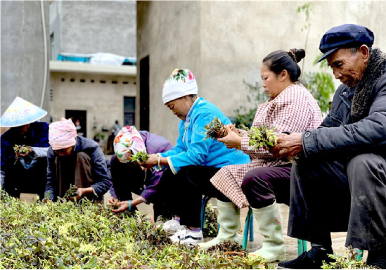 村民們?cè)诜謷a(chǎn)品(凌埡公司提供)