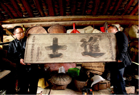 六郎城村清光緒十九年考取進(jìn)士的肖景清牌匾(蘭天明攝影)