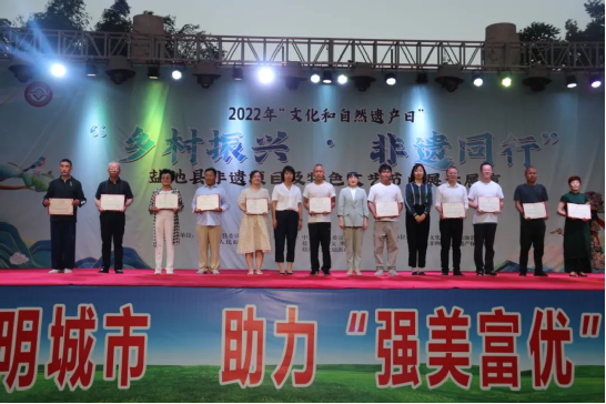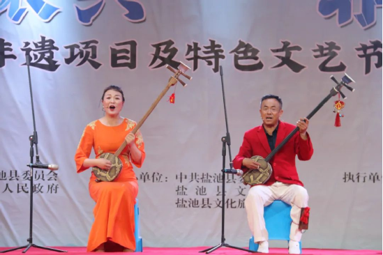 演出開(kāi)始前公布了第四批縣級(jí)非物質(zhì)文化遺產(chǎn)代表性項(xiàng)目及第三批鹽池縣級(jí)非物質(zhì)文化遺產(chǎn)代表性傳承人名錄,并為代表性項(xiàng)目和傳承人頒發(fā)牌匾及證書。