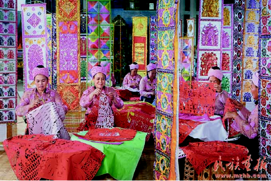 工藝美術專家在邵梅罕傣族剪紙藝術館考察。