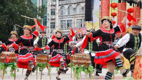 糧食得到了豐收,鼓成了瑤民的功臣,成了瑤民心中的神。后來(lái)這被瑤家人戲稱為“趕猴鼓”的打鼓方式就慢慢演變成為各大小節(jié)日的表演節(jié)目。于是趕猴鼓成了瑤民住在山中的神鼓,流傳至今便有了今日的瑤山鼓。