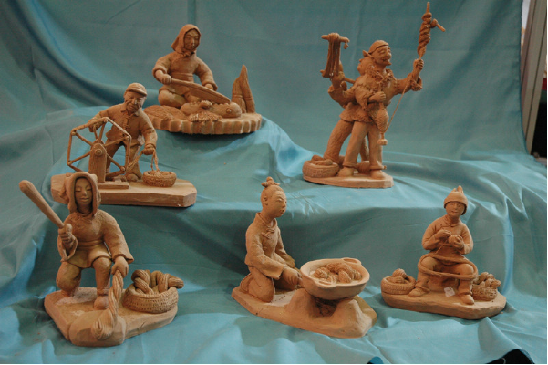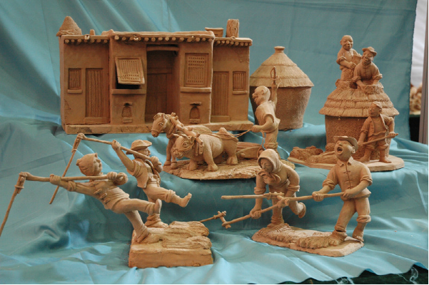 泥塑藝術(shù)是我國一種古老常見的民間藝術(shù)。它以泥土為原料,以手工捏制成形,或素或彩,以人物、動物為主。不同的民間風(fēng)俗,流傳著很多動人的傳說故事,這些構(gòu)成了泥塑藝術(shù)的精神內(nèi)核。民間泥塑的用途主要有祈子延壽、納福招財、驅(qū)邪避災(zāi)和裝飾擺設(shè)等。泥塑成本低,費工少,是老百姓喜聞樂見的藝術(shù)表現(xiàn)形式,它往往和節(jié)令、禮儀、風(fēng)俗聯(lián)系在一起,反映的是當?shù)剞r(nóng)村人們?nèi)粘I畹牟煌瑘鼍埃宋镨蜩蛉缟?,場景鮮活生動。