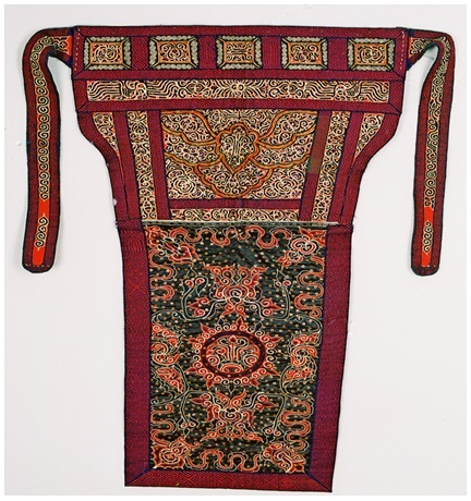 珍藏于民族文化宮博物館的這件水族馬尾繡背兒帶,是水族婦女背負(fù)兒童的工具,于20世紀(jì)80年代征集于貴州...