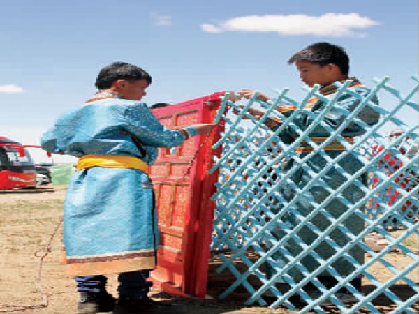 阿拉善左旗蒙古族學(xué)校將長調(diào)民歌、蒙古族傳統(tǒng)舞蹈、馬頭琴演奏、陶布秀爾彈奏、沙力博爾式摔跤、蒙古象棋、吉日格、諾爾布,薩吾爾登等文體活動(dòng)及棋牌游戲納入課堂教學(xué)及二課活動(dòng)。在一年當(dāng)中,根據(jù)不同的季節(jié),讓孩子們走進(jìn)社區(qū)、自然、農(nóng)社、牧宅、尋覓生活本源,了解傳統(tǒng)文化。