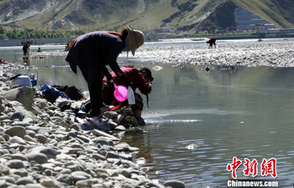 雖是初秋,但拉薩的陽光依然炙烈,拉薩河河水微暖。按照藏歷氣象學的說法,此時水質(zhì)最好——甘、涼、軟、輕、清、不臭、不損喉、不傷腹。