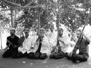 夏季的喀什,空氣中涌動著濕潤的氣息。這個(gè)玉石一般潤滑的綠洲一派生機(jī)。在老城夯土滄桑的背影中,一陣憂傷的琴聲在城市上空回蕩,古老的《十二木卡姆》剎那間奏響耳邊。回味著剛才的琴聲,感覺就是它——沙它爾,只有它的憂傷才會讓木卡姆如此動人心弦。
