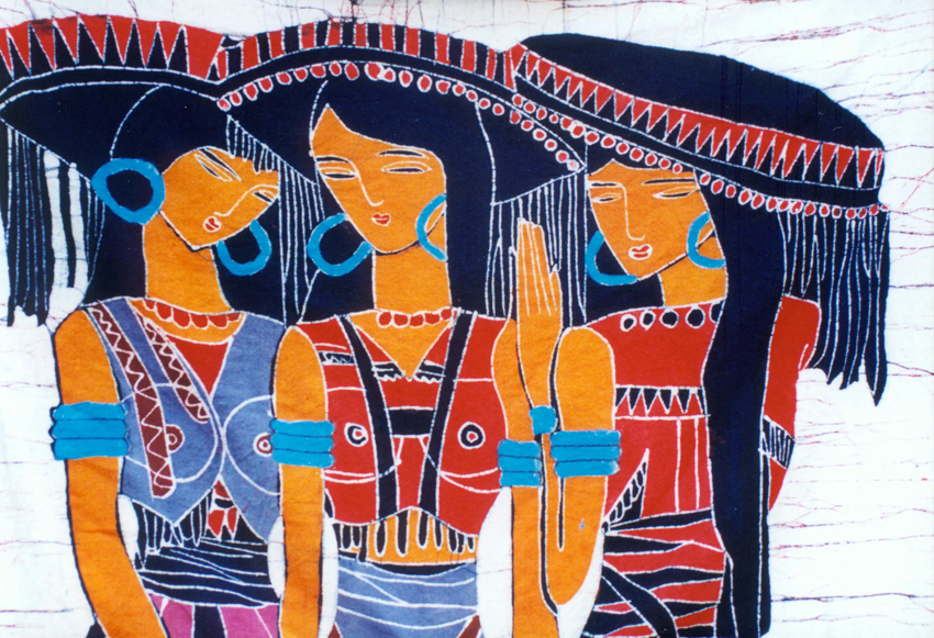 蠟染是貴州省丹寨縣、安順縣、織金縣苗族世代傳承的傳統(tǒng)技藝。 丹寨縣、安順縣及織金縣是以苗族為主體的多民族聚居區(qū),在長期與外界隔絕的艱苦環(huán)境中,這里的居民逐漸形成了自給自足的生活方式,古老的蠟染技藝因此得以保留下來。按苗族習(xí)俗,所有的女性都有義務(wù)傳承蠟染技藝,每位母親都必須教會自己的女兒制作蠟染。所以苗族女性自幼便學(xué)習(xí)這一技藝,她們自己栽靛植棉、紡紗織布、畫蠟挑秀、浸染剪裁,代代傳承。在此狀況下,這些苗族聚居區(qū)形成了以蠟染藝術(shù)為主導(dǎo)的衣飾裝束(以上三照片由劉軍提供)。