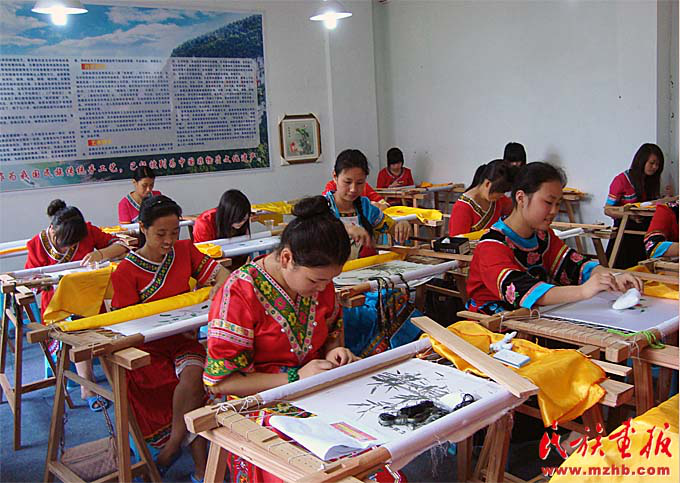 2015年,李紹玉榮獲年度“全國(guó)優(yōu)秀農(nóng)民工”。2016年,李紹玉成為重慶非物質(zhì)文化遺產(chǎn)——彭水苗繡的代表性傳承人。從一個(gè)打工女,到回家鄉(xiāng)帶動(dòng)村民致富,再到成為全國(guó)人大代表,她說自己深感榮幸和責(zé)任重大。“總理報(bào)告里專門提到‘加強(qiáng)文物保護(hù)利用和文化遺產(chǎn)保護(hù)傳承’,我自己的成長(zhǎng),就得益于此。苗繡是苗族人民古老而美麗的技藝,我們有責(zé)任把它世代傳承下去。我們也要在苗族文化與手工藝術(shù)品融合上下功夫,使傳統(tǒng)工藝與市場(chǎng)結(jié)合、傳統(tǒng)元素與現(xiàn)代時(shí)尚相結(jié)合。”