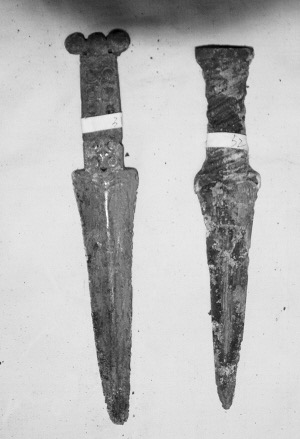 2006年,涼山州文化局請(qǐng)文物專家鑒定了公安機(jī)關(guān)收繳的鹽源文物,鑒定現(xiàn)場(chǎng)有3把雙環(huán)首青銅短劍。其中一把青銅短劍長(zhǎng)27厘米,一把長(zhǎng)27.5厘米,還有一把26厘米,均為戰(zhàn)國(guó)至漢代時(shí)期文物。