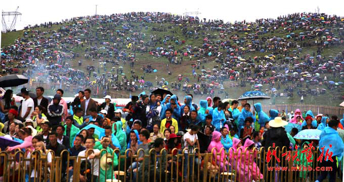 一套傳統(tǒng)盛裝,光是金銀首飾就有十幾斤重,時(shí)價(jià)幾十萬(wàn)元,是一個(gè)普通彝族家庭的重要財(cái)產(chǎn)。只要在火把節(jié)這樣的重要節(jié)日,才穿戴。臨近中午,火把場(chǎng)附近的觀眾已經(jīng)人山人海,黑壓壓一片,他們或與家人親戚在一起,或與朋友在一起,或站或坐,在草地上、山坡上,邊嘮家常邊欣賞激烈賽事,享受著他們的節(jié)日。