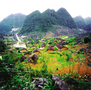 廣西百色地區(qū)那坡縣村落。村寨多隨地形與山勢,布局自由分散,既不存在縱橫軸線,也沒有明顯的村寨邊界。受地形影響,村寨規(guī)模一般不大
