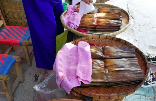 褡褳粑是布依族人民喜愛的傳統(tǒng)食品,因其如褡褳袋而得名。每逢農(nóng)歷七月十五日(中元節(jié)),布衣族人民均普遍制作褡褳粑,作為祭祀祖先的供品。相傳兩千多年前,祭祖是用當(dāng)?shù)厥a(chǎn)的芭蕉果和普通糍粑,后來發(fā)展為用芭蕉和糯米蒸熟,加上紅糖,制成甜味糍粑。又經(jīng)過多次改進(jìn)才形成現(xiàn)在的褡褳粑。如今,除七月十五日以外,逢年過節(jié),宴客,走親訪友,也要制作褡褳粑。蒸熟后的褡褳粑呈長方形,色澤醬黃,香甜細(xì)膩,具有芭蕉果和芭蕉葉的特殊香味。熱吃軟滑細(xì)膩,冷吃清涼甜潤,烙食香脆。